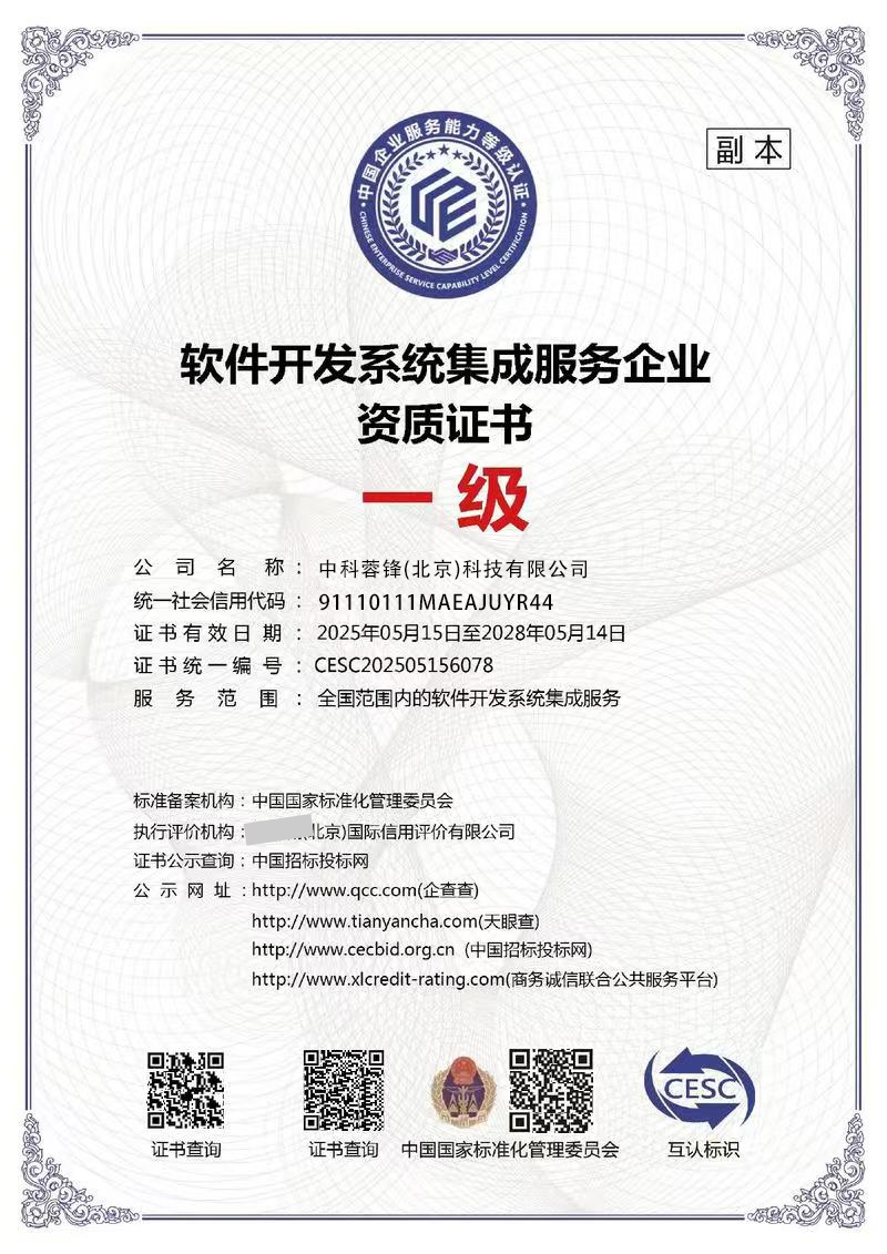 中科蓉锋(北京)科技有限公司是一家专业提供数字乡村、智慧政务、智慧城市解决方案的高科技公司,中科蓉锋拥有深厚的技术积累,并长期投入于新技术与新场景的应用研究,不断增强数字技术服务行业领先的全栈式服务能力,涵盖智能算法、卫星遥感、智能感知、智能决策、大数据分析、智能内容生成和智能内容增强等关键技术应用场景,相关产品与解决方案深受客户与合作伙伴好评。