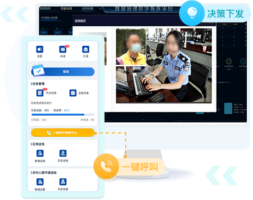 网格员巡查现场出现无法决策情况,可通过“一键呼叫指挥中心”功能,向指挥中心发起视频邀请,通过移动端实时传送人的语音和图像,指挥中心通过视频查看现场的状况,针对真实情况给出精准的解决方案。