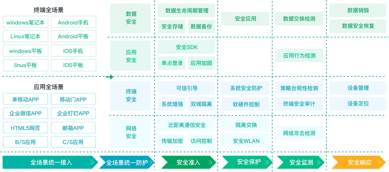 提供“保核心”服务的软硬件一体化数据安全系统。该系统利用深度学习、大数据分析等先进技术,以数据为防护核心,以身份和权限作为新的防护边界,针对涉密信息系统进行隔离和安全保护。用户通过登录至统一数据安全管理的方式,实现用户与被保护的数据和网络资源之间的访问。统一数据安全管理系统集成隔离、数据存取管控、运维审计、事件告警、大数据安全分析和溯源等多种功能。