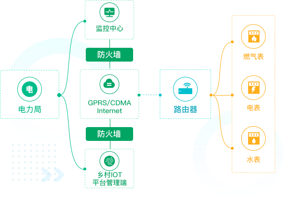 乡村IOT平台通过统一的数据采集终端和通信信道,实现乡村居民用电表、水表、燃气表、三表数据信息的远程自动采集,构建用户用能综合数据平台,实现能源计量产业的同步提升,有效提升乡村公共服务水平,实现乡村公共服务资源效益最大化。