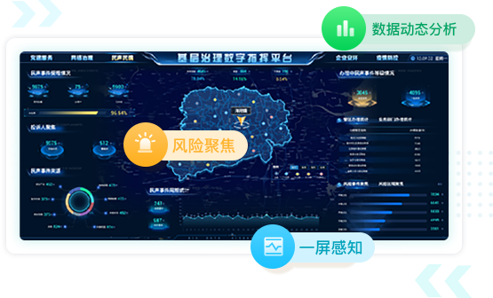 建立民声民情数据分析中心,实时动态掌握民声事件各类型数据,包括民声事件受理情况、投诉人聚焦、名声事件各类型来源、周期性数据统计分析、民众满意度综合数据、办理事件登记情况、辖区内各部门事件办理情况、辖区内各区域事件类型风险聚焦,真正实现一屏感知民声事件各项数据信息。